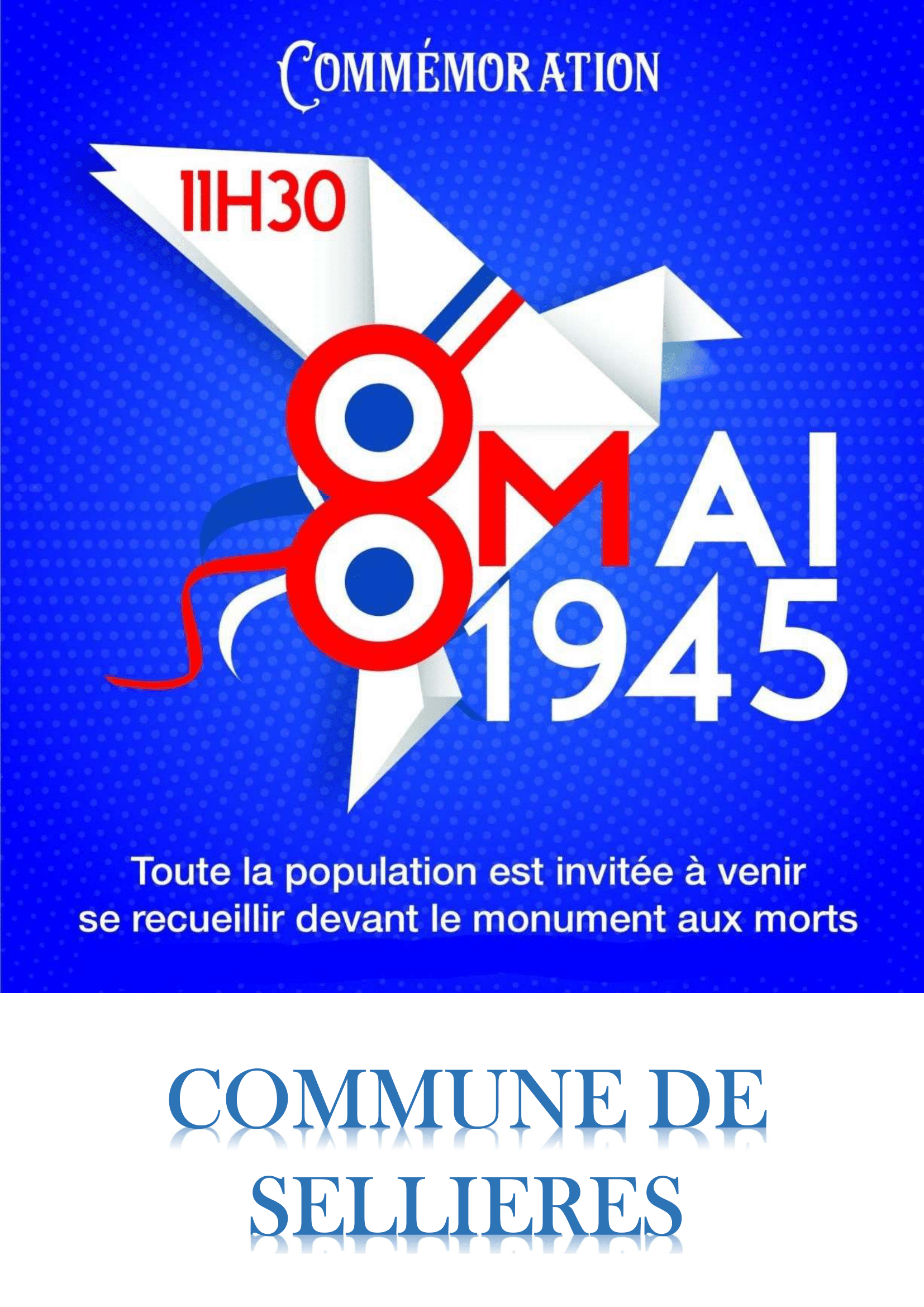 Toute la population de Sellières, est invitée à la cérémonie de commémoration du 8 mai 1945, au monument aux morts