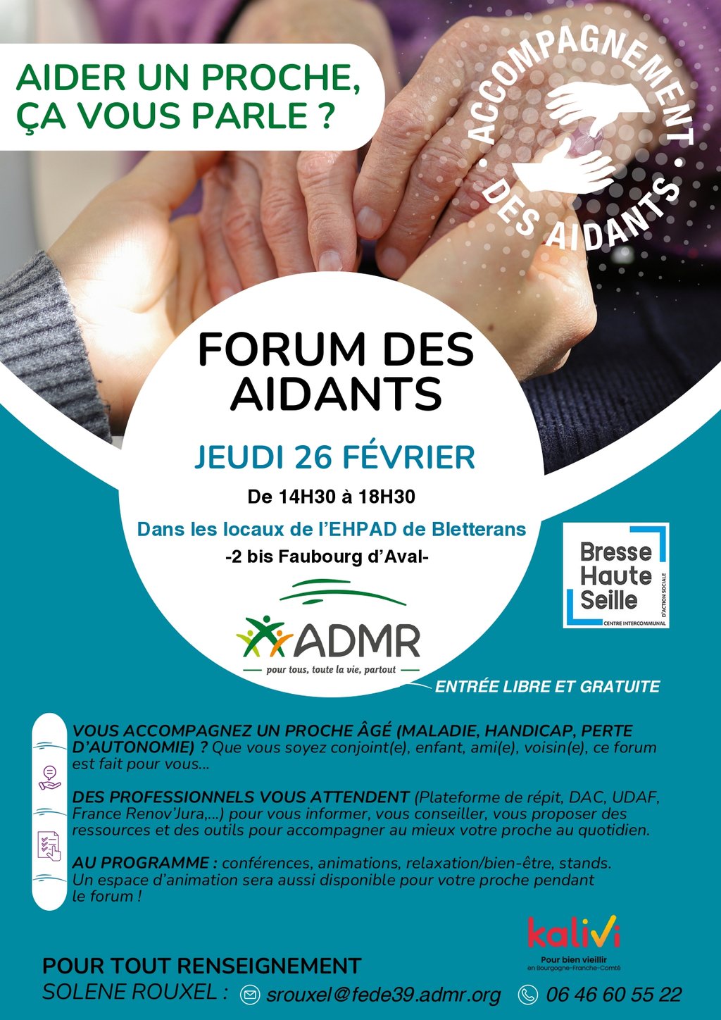 👉 Organisé par la Fédération ADMR du Jura, ce forum a pour objectif d’offrir aux aidants un moment d’information, d’échanges et de convivialité autour des solutions existantes pour accompagner au mieux leurs proches.