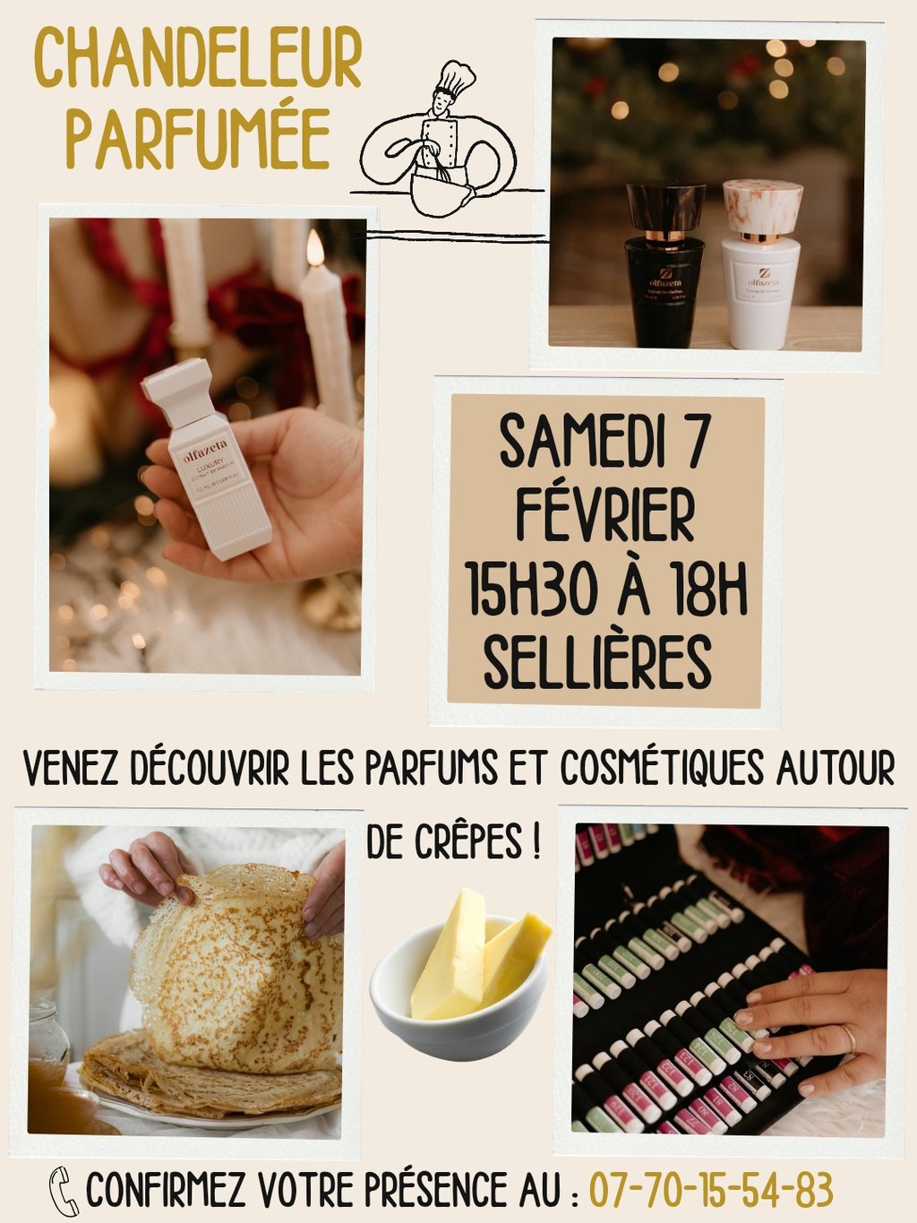 Je vous invite à une chandeleur parfumée à mon domicile pour manger des crêpes tout en découvrant les parfums et autres produits !